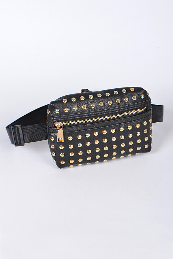 PB7177 BLACK GOLD Studded Fanny Pack With Zipper